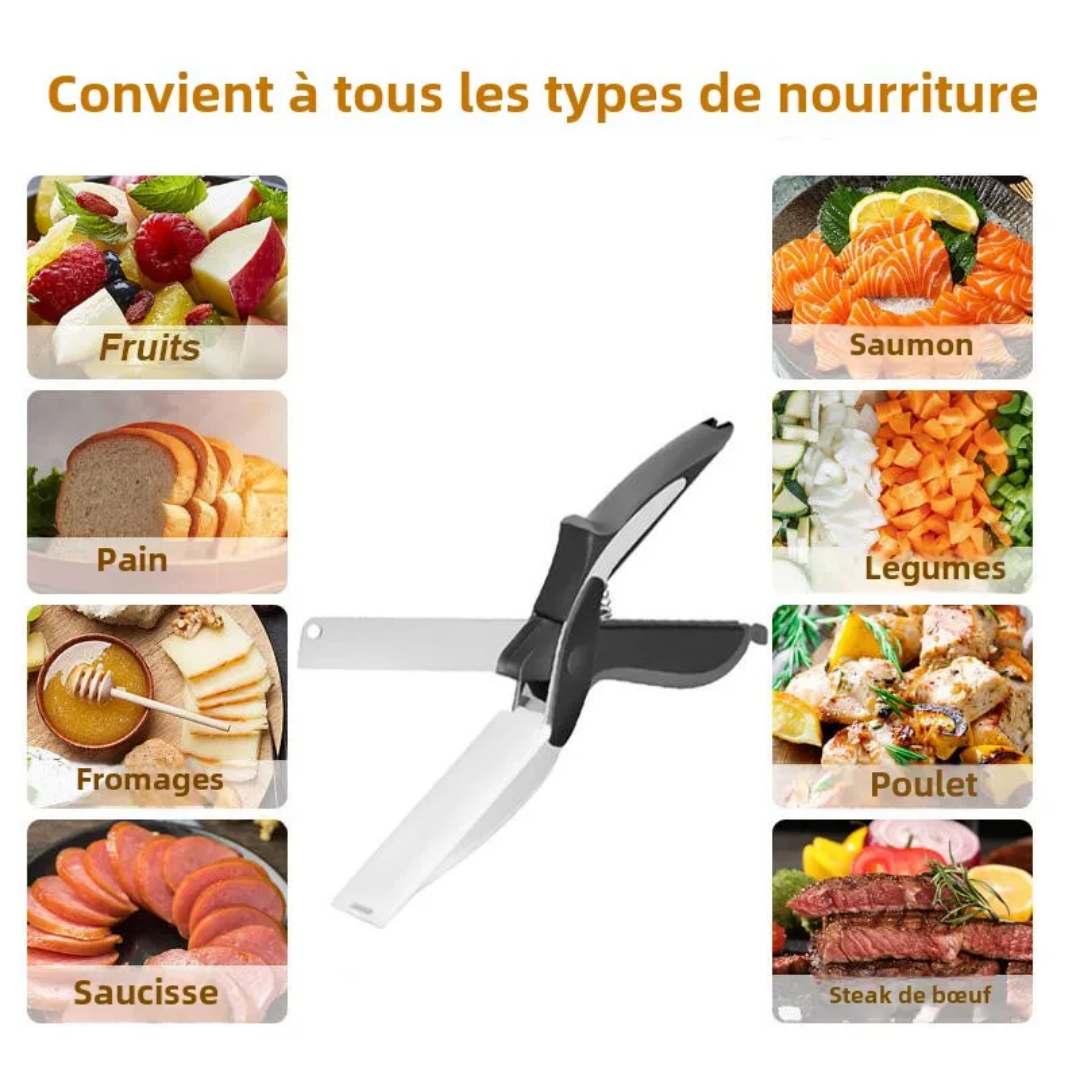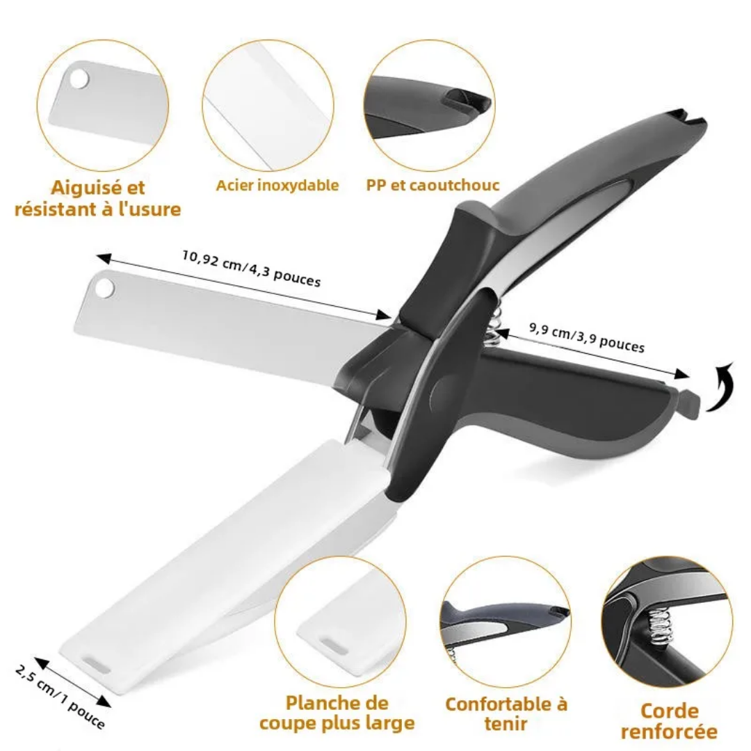 Gagnez du temps en cuisine avec cet outil ingénieux qui combine un couteau ultra-tranchant et une mini-planche intégrée !